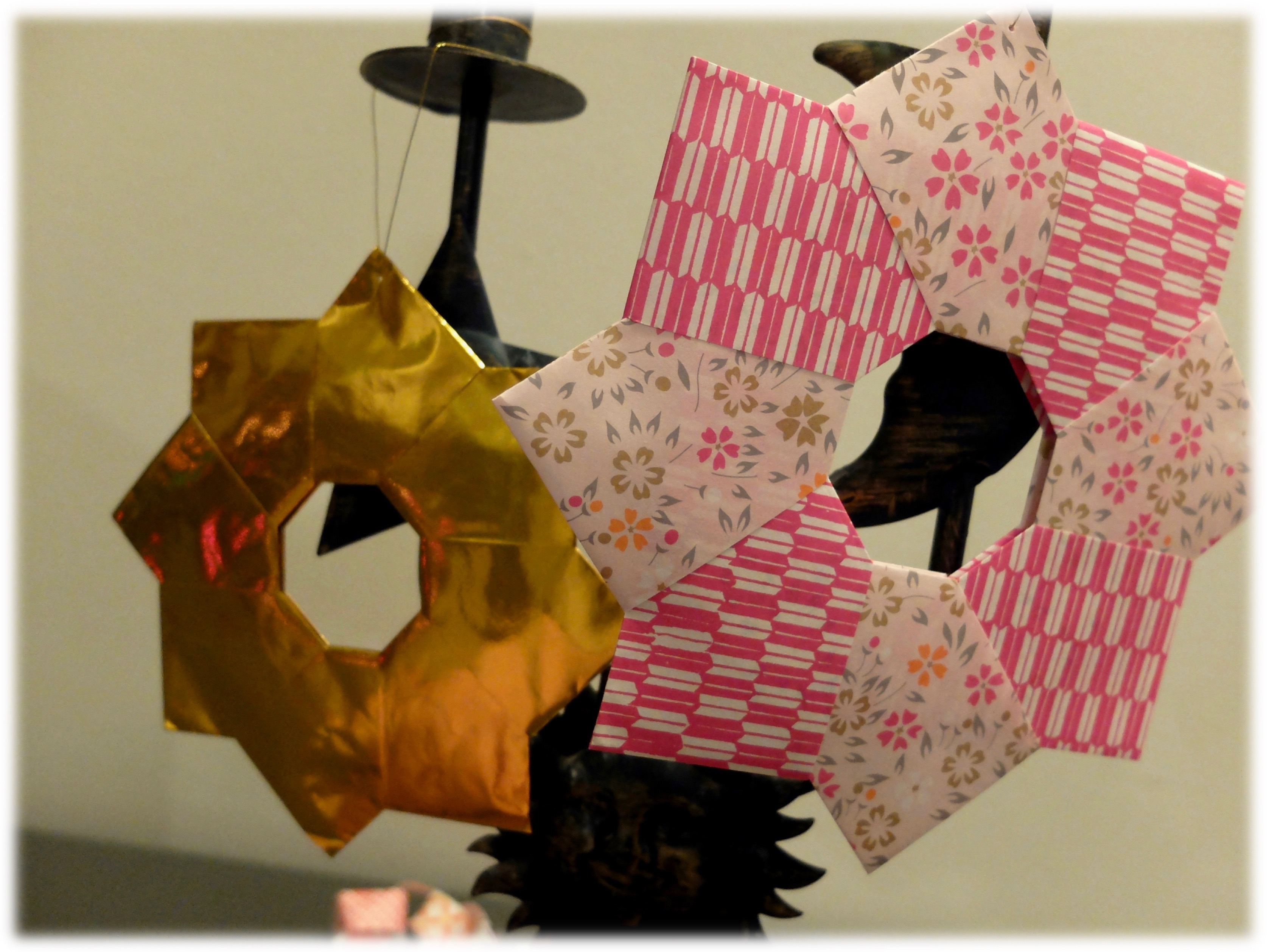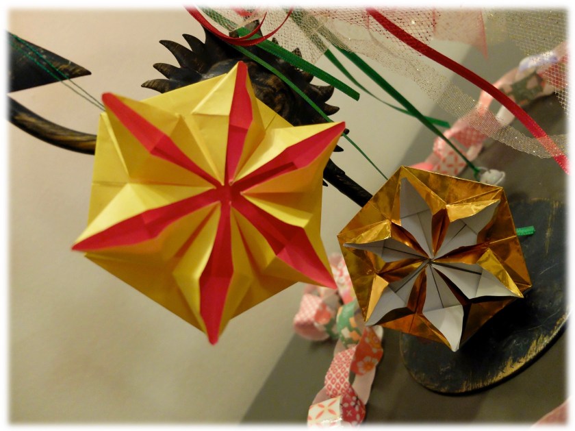 Au sein de l’association Atlantique-Japon, j’ai également proposé les guirlandes en papier origami pour les enfants. Pour les adultes, j’ai testé deux pliages d’étoiles. Un très simple, dont j’ai trouvé le tutoriel gratuit sur le blog Les surprises de Fifi Mandirac. Là encore, il y a un peu de découpe avant le pliage, mais c’est très simple de réalisation, et le résultat est très satisfaisant.