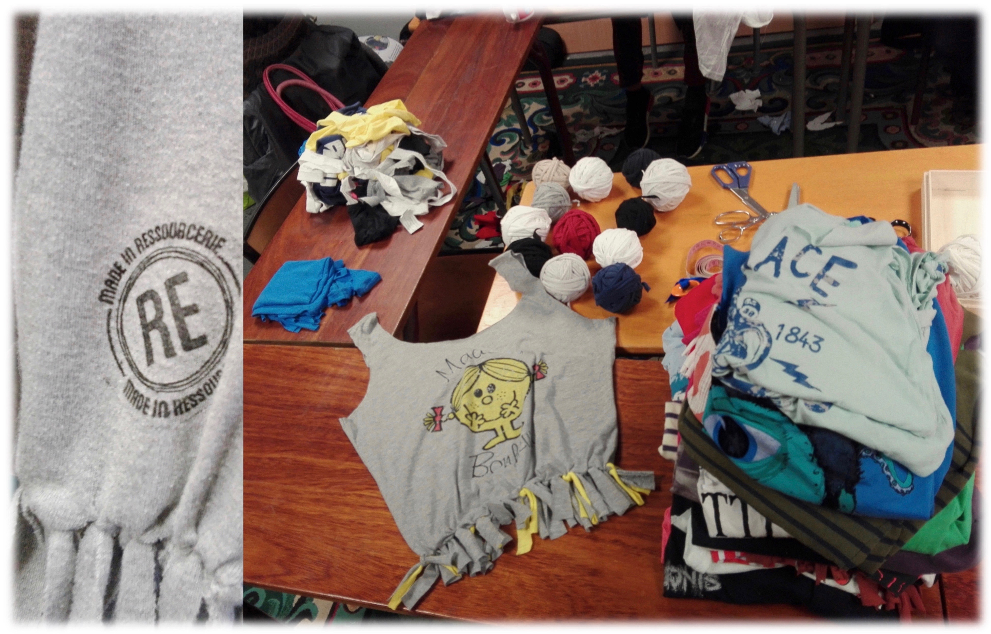 Sous les conseils d’Elsa, une employée de la Ressourcerie, j’ai passé 3 heures avec 7 autres bénévoles, ciseaux en main, à donner une deuxième vie à quelques sacs de t-shirts invendables, troués, tachés ou boulochés. Nous avons tous été satisfaits du résultat, et pour ma part, je suis heureuse d’avoir pris part au « Made In Ressourcerie ».