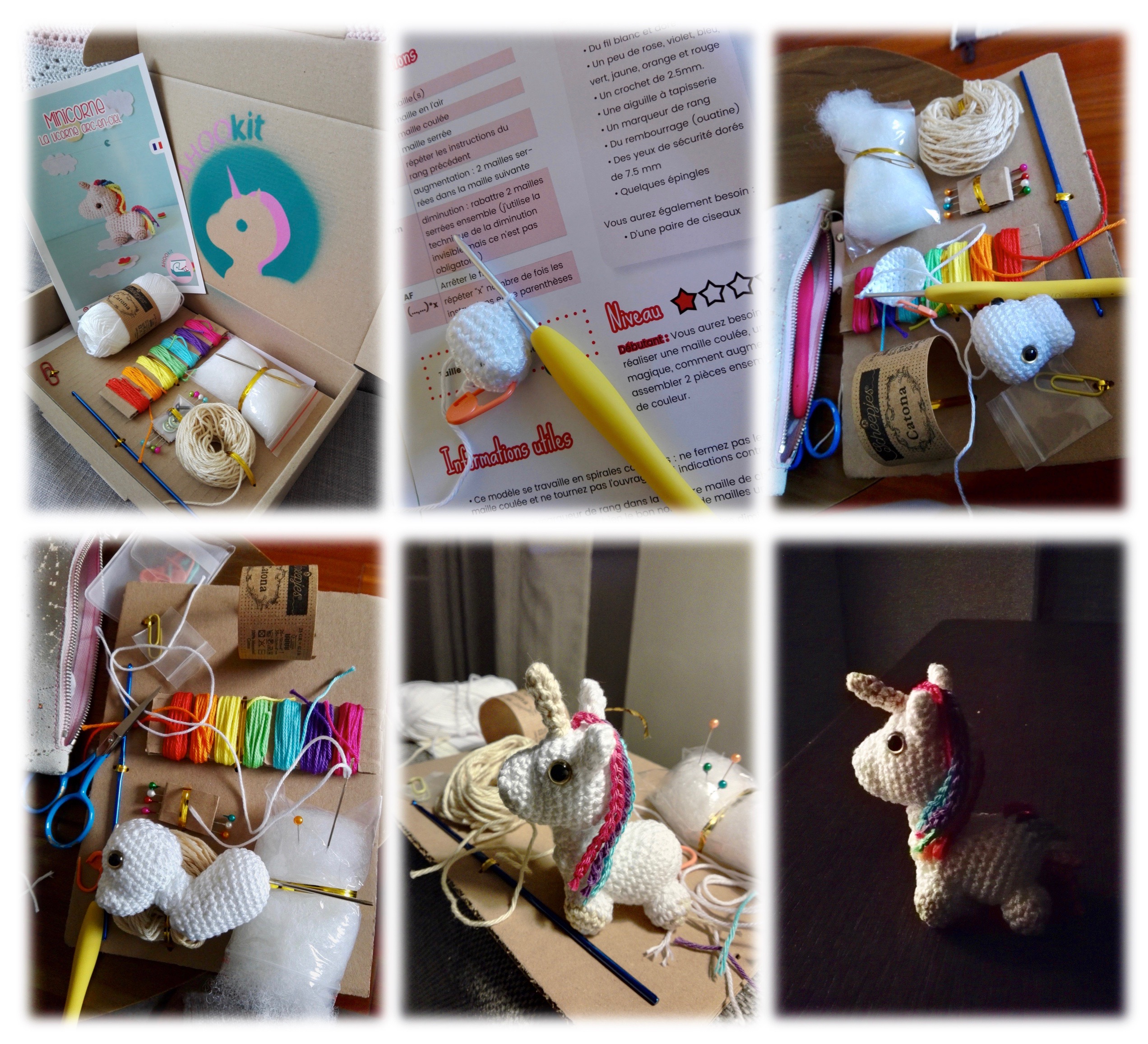 Au début du mois d’octobre, j’ai vu sur la page Facebook de Ahooka’migurumi qu’Ophélie se lançait dans la vente de kits. J’avoue que ce qui m’a d’abord séduite, c’est le côté absolument adorable de cette mini licorne arc-en-ciel. Ensuite, j’ai aimé la possibilité de pouvoir la réaliser sans avoir à me soucier de chercher à droite et à gauche la bonne couleur de fil ou le bon diamètre d’yeux sécurité. Mais ce qui a achevé de me convaincre, c’est la démarche d’Ophélie: elle explique sur son blog comment sont nés les Ahookits, et je trouve que les idées qui naissent en bonne compagnie autour d’un apéro ensoleillé sont les meilleures à encourager et à faire vivre.