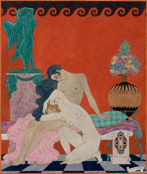 Voici deux œuvres de George Barbier inventoriées au Musée des Arts de Nantes, « Deux femmes au divan » et « L’artiste dessinant »: