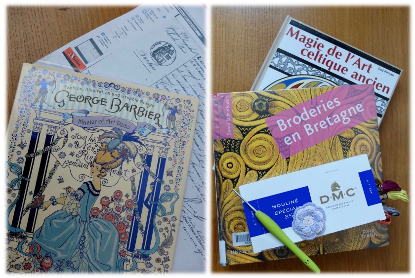 Quand je pense à toutes ces sources d’inspirations qui m’ont touchée en l’espace de quelques jours, je me sens chanceuse. Ce qui en résulte pour le moment, c’est un retour au fil à broder… que je crochète. La nouvelle gamme de 35 couleurs de mouliné DMC m’inspire des petites fleurs qui poussent facilement et qui attendent de trouver leur place dans un projet plus grand. Je reste dubitative devant l’anonymat relatif de Rébé et de George Barbier, tout comme devant l’abandon d’un atelier artisanal qui ne demanderait qu’à revivre. Une escapade, ce n’est que quelques jours d’ailleurs, mais je sens que celle-ci va nourrir mon inspiration et ma réflexion pendant un certain temps.