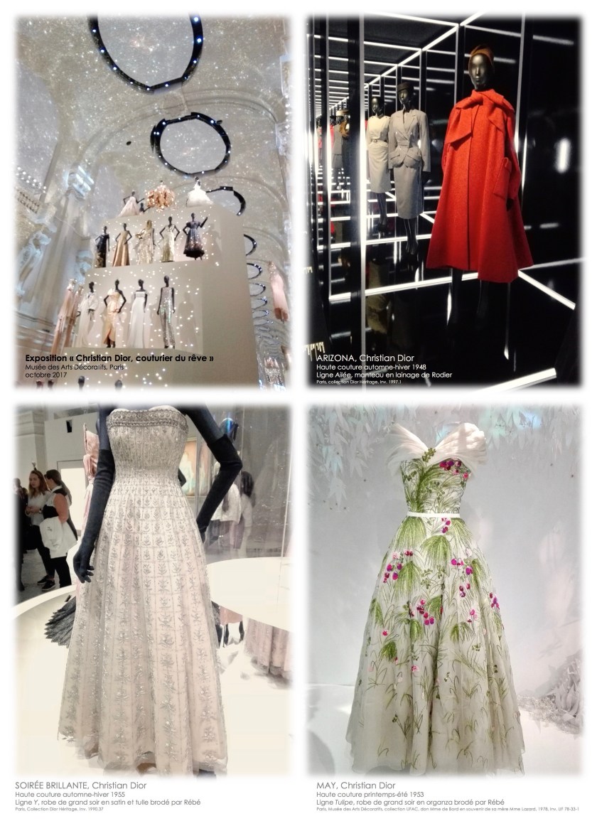 Ensuite, quitte à être dans la foule à Paris, j’en ai profité pour visiter l’exposition Christian Dior au musée des Arts Décoratifs. J’avais envie de belles matières, de mélanges de couleurs et de matériaux, d’un voyage dans les années 50 et 60, au gré de tenues qui les ont traversées.