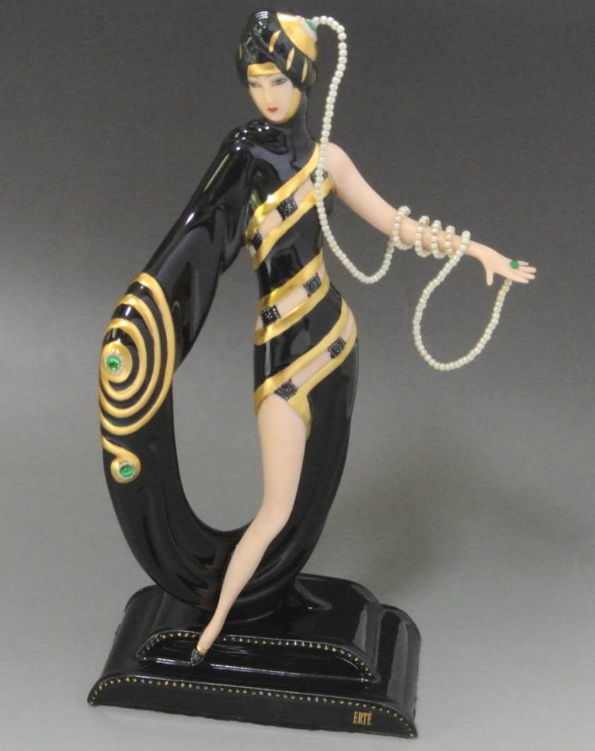 À priori conçue en une série de 300 sérigraphies de 75 x 100 cm dans les années 1910, cette élégante déesse Art Déco fut transformée, dans les années 1990 par la maison Franklin Mint, en une série de statuettes de porcelaine de 30 cm de haut peintes à la main. Aujourd’hui encore, ces petites statuettes ont beaucoup de succès dans les ventes en ligne, aux États-Unis ou au Japon, se vendant entre 300 et 500€.